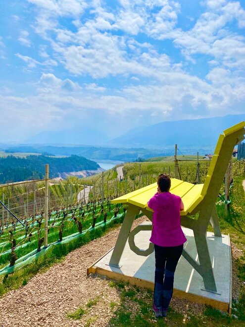 2. with a very short walk among the apple orchards you will arrive at the giant bench of Groppello, the "Big Banch n. 132", from which you can admire a beautiful view of Lake Santa Giustina; a very simple excursion, but worth the trip.
