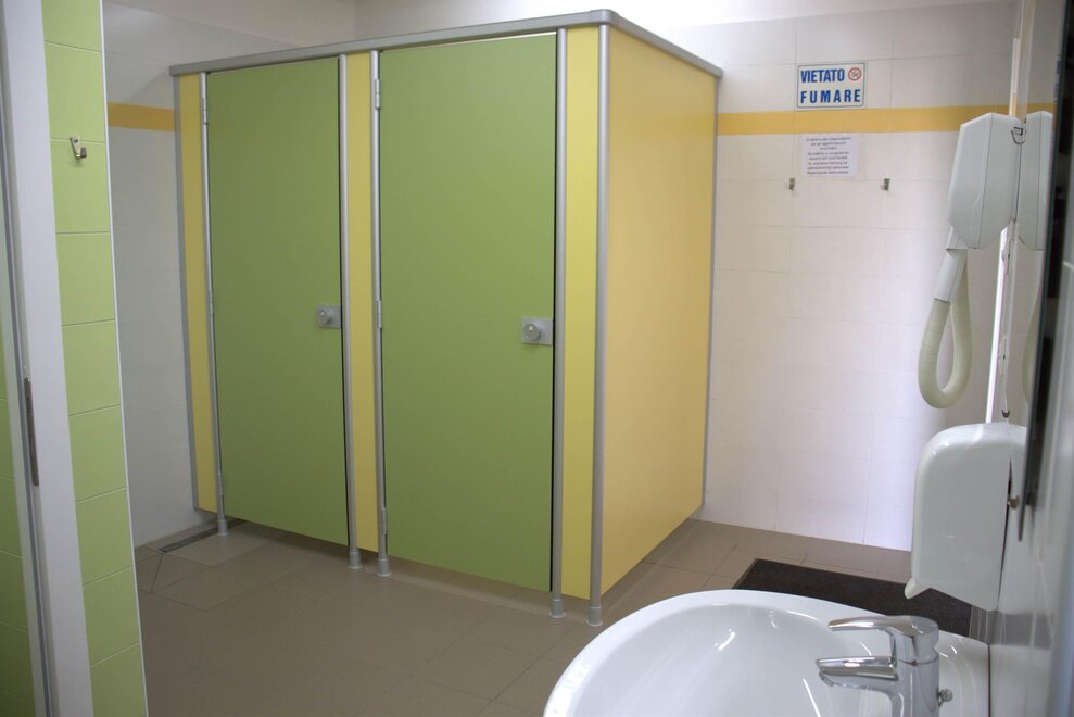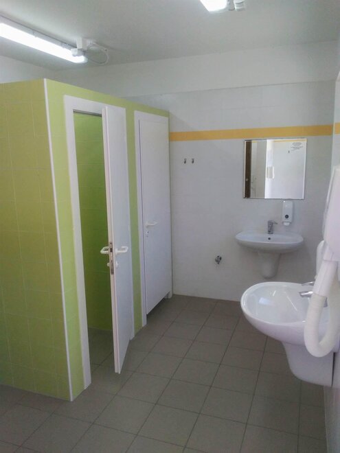 K dispozici jsou hygienické zařízení se sprchami s teplou vodou, fénem, místností na mytí nádobí a prádla, venkovní umyvadla, pračka na mince, gril s verandou a stoly a společný chladničkou doplňují vybavení.