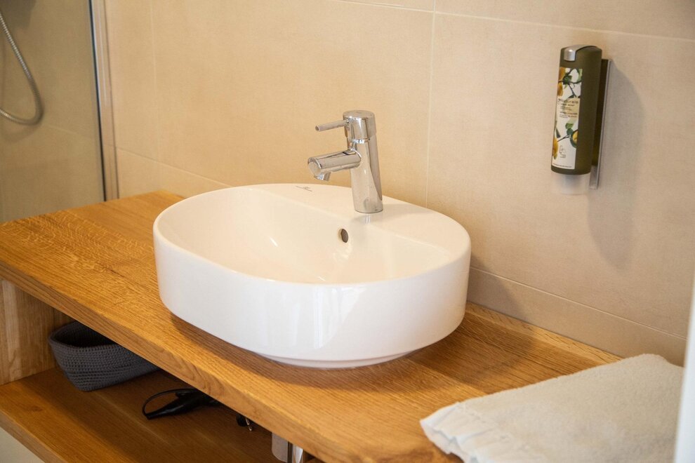 DOUBLE DELUXE V této místnosti jsou 3 lůžka: manželské (nebo na požádání dvě samostatná) a třetí lůžko. Pokoj má velké okno, které směřuje na jih, odkud je možné pozorovat panoramatický výhled na celé údolí od Cima Panarotta po Monte Bondone. Všechny naše pokoje mají dřevěnou podlahu, strop a nábytek, klimatizaci a recirkulaci vzduchu, koupelnu s toaletou, bidetem a sprchou. Všechny pokoje mají společnou zahradu. V pokojích jsou k dispozici TV a elektr kettle.