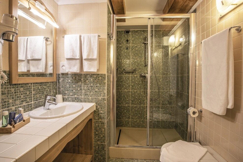 Living room with double pull down bed, sleeping room with double bed, bath with shower, balcony. Bed and breakfast treatment included. Possibility to add lunch/dinner at a special price in the indoor restaurant