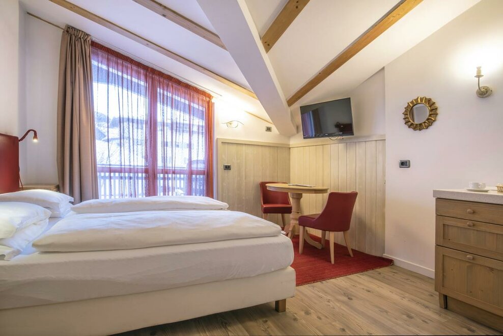 nacházíme se v centru Canazei, pouhých 200 m od lanovky Col dei Rossi.