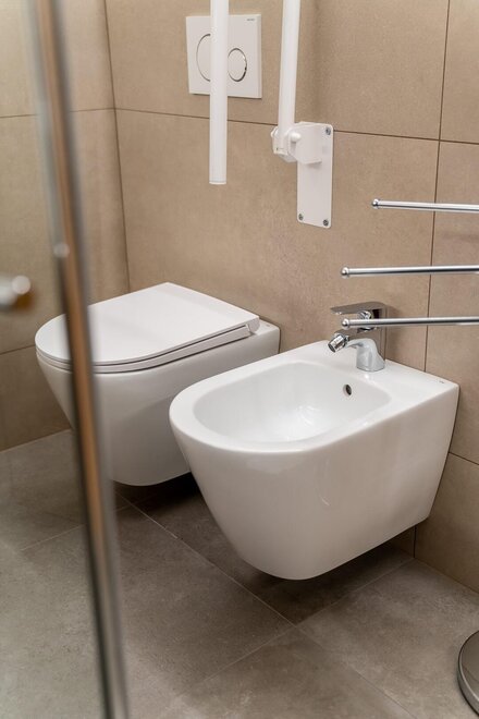 sejf, toaletní potřeby, toaletní prádlo, topení, vlasový fén, psací stůl, satelitní TV, Wi-fi zdarma, balkón (někde), pokoj vhodný pro vozíčkáře