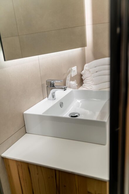Jak pokoj, tak koupelna mají termostat pro nastavení teploty. Je vybavena TV, trezorem a bezplatným Wi-Fi.