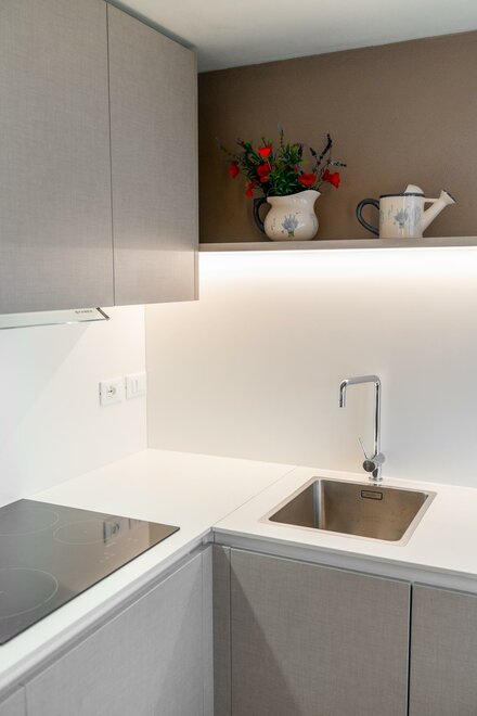linen provided , základy (Ručníky, povlečení, mýdlo a toaletní papír), Midweek cleaning only on request - for a fee, kuchyňské nádobí, vlasový fén, povlečení k dispozici, pokoj/apartmán v tiché zóně, moderní napojení, lednice, toaletní prádlo, nekuřácký pokoj, crockery and cutlery , WiFi, dřevěná/parketpvá podloha, TV, možnost mražení potravin, kuchyňský kout, apartment without fitted carpet