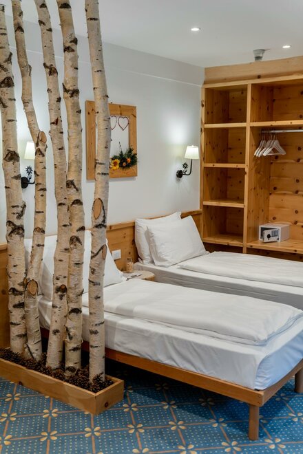 Our rooms are furnished in mountain style. All wood can convey to our customers the right warmth and the hospitality of our own locations