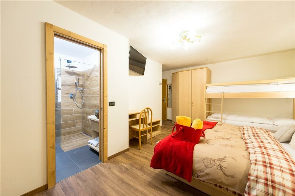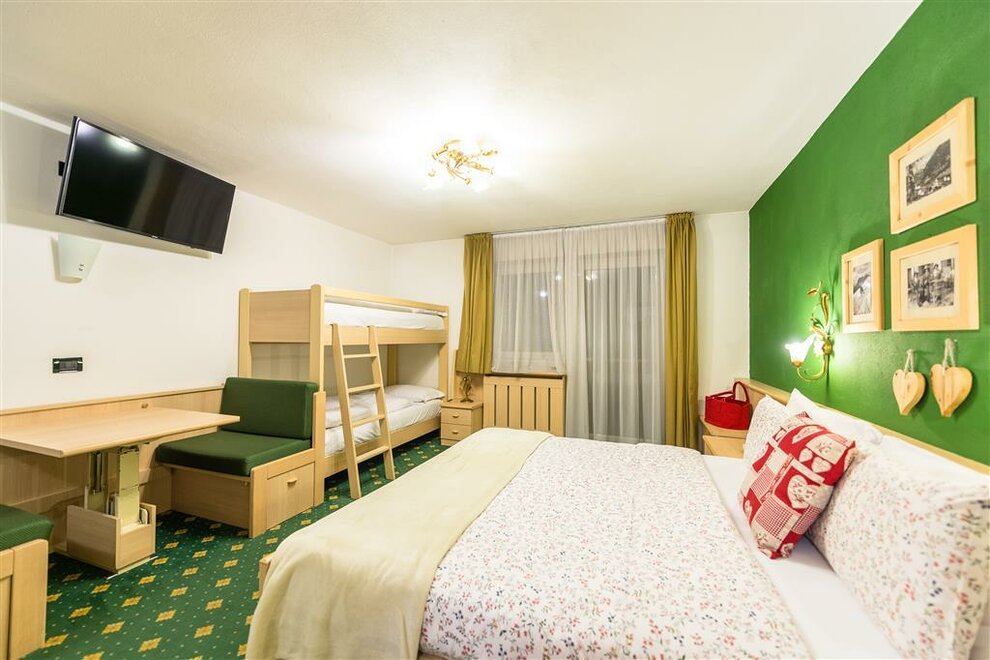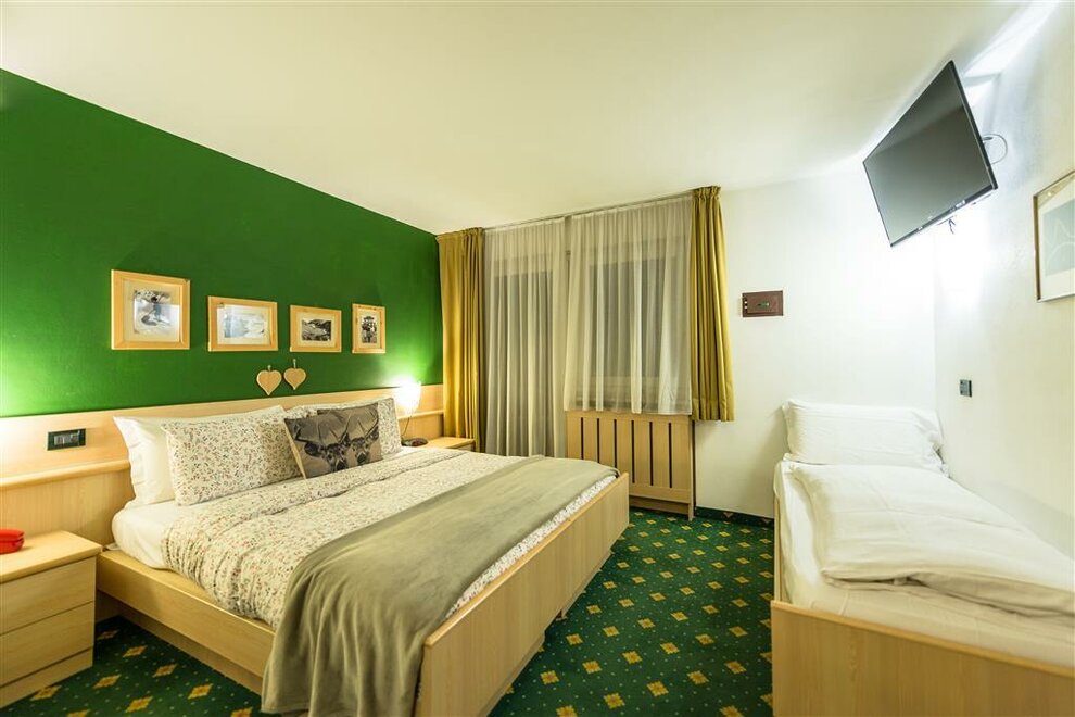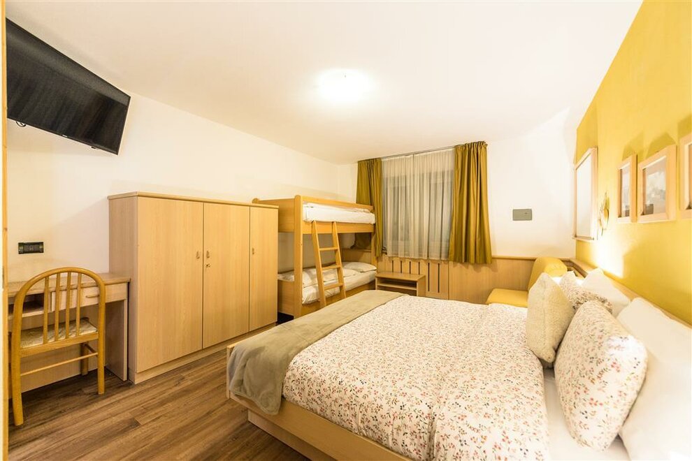 Naše trojlůžkové pokoje vám umožňují sdílet každý cenný okamžik vaší dovolené v Val di Fassa: jsou prostorné a světlé, abyste našli prostor a svobodu domova, se všemi pohodlími hotelu.