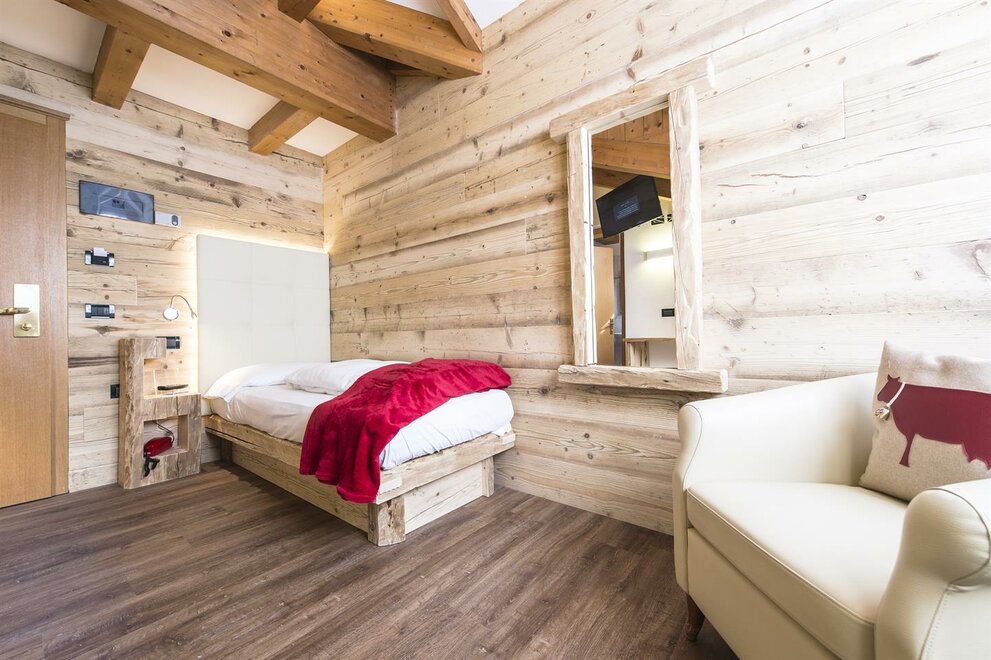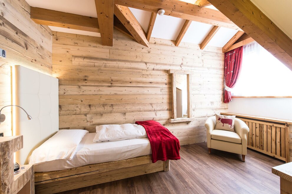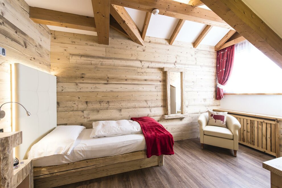 Nový jednolůžkový pokoj vám poskytne veškeré vzrušení dovolené v naprosté svobodě: útulný, elegantní a rafinovaný, je zařízený dřevem z Val di Fassa a zařízený v moderním stylu. S veškerým komfortem je ideální pro vaši dovolenou v horách.