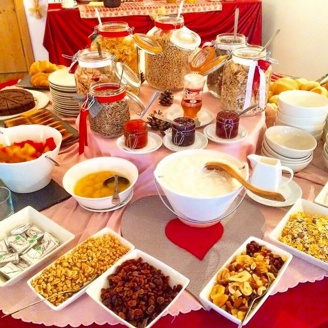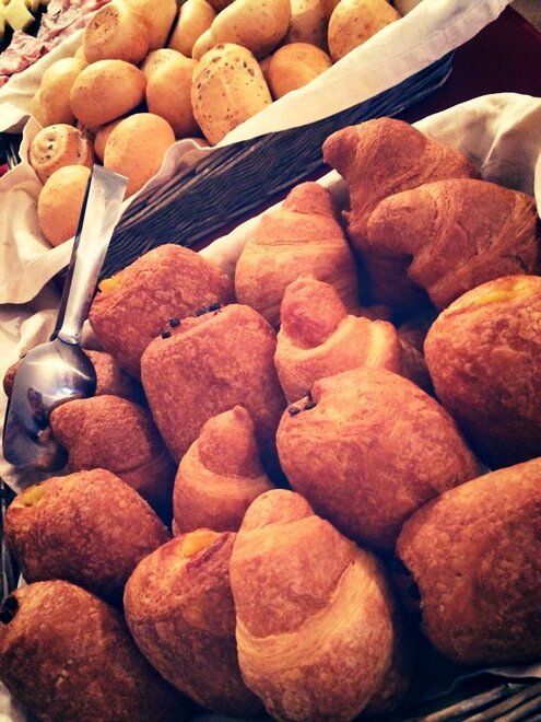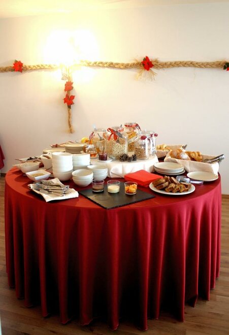 Podáváme snídani formou bufetu ve vyhrazené místnosti: vybírejte mezi sladkým a slaným pečivem, croissants, dorty, uzeninami, jogurty, marmeládami.