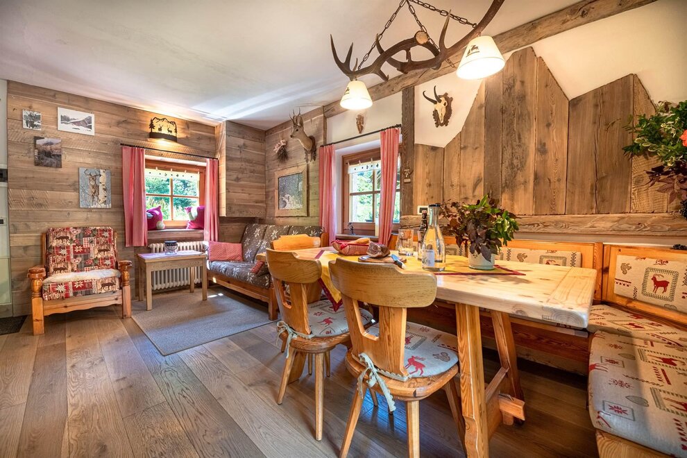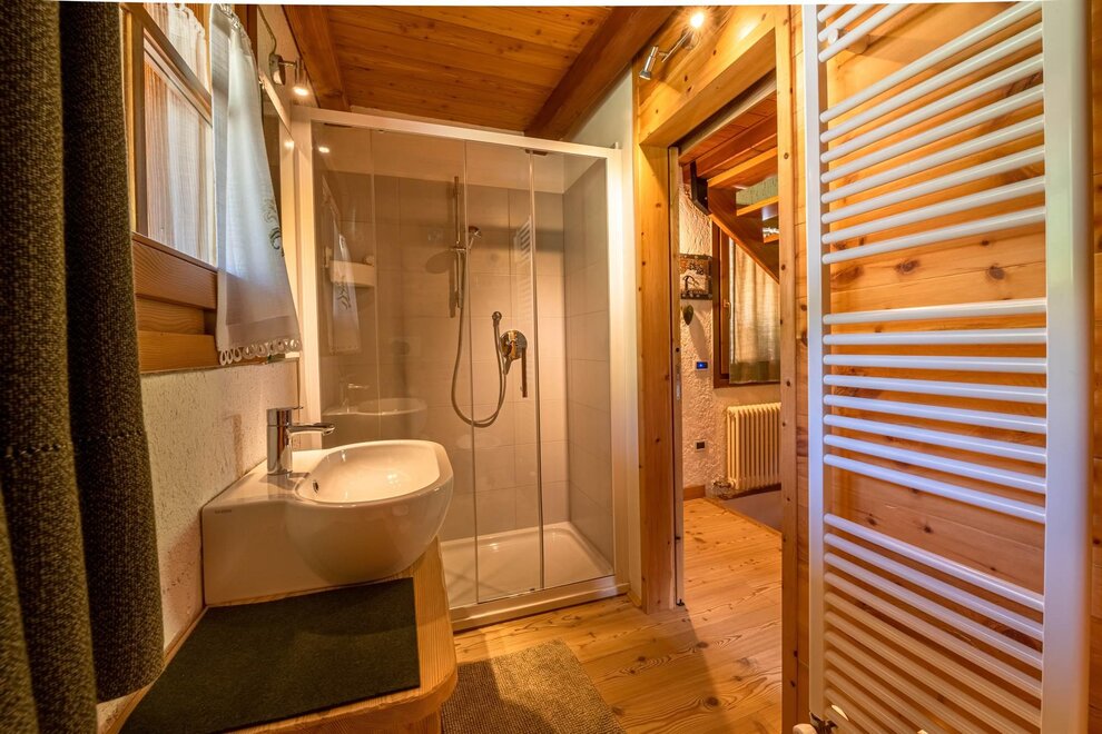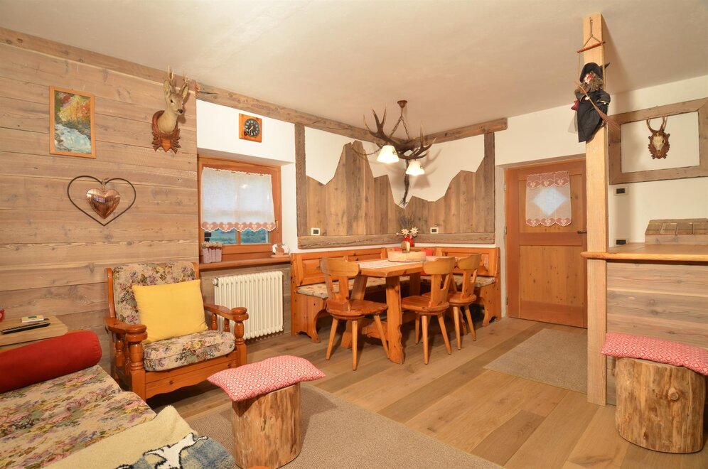 Jedinečnost obývací části spočívá v mezonetu, který je přístupný bezpečným dřevěným schodištěm. Tento prostor může být použit jako odpočinková zóna pro čtení dobré knihy nebo pro poslech relaxační hudby po intenzivním dni mezi horami údolí Val di Peio. Mezonet je také vybaven pohovkou, pokud jde o rodiny s více než 6 členy nebo skupiny přátel. Venku vás čeká soukromý trávník a gril pro příjemné obědy s přáteli, kromě nádherného výhledu na údolí Val di Peio a okolní horské skupiny.