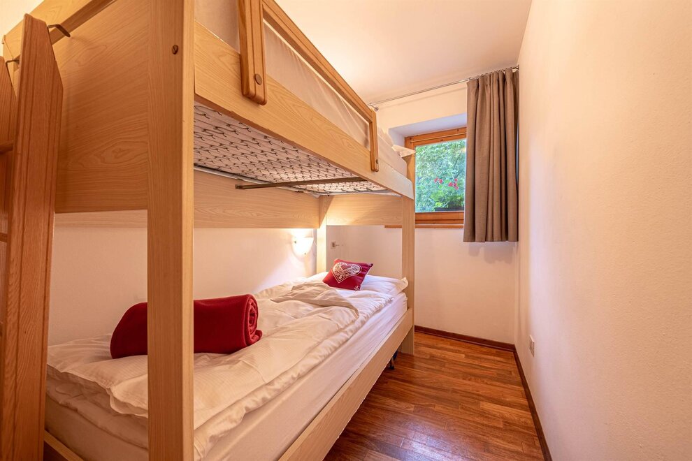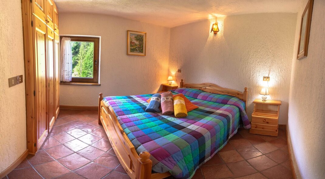 CHALET MAS TARLENTA: Chata Mas Tarlenta je samostatná chata nacházející se v srdci národního parku Stelvio ve výšce 1 750 m n. m. Chata se rozkládá na dvou úrovních. V přízemí se nacházejí dvě ložnice - jedna manželská a jedna čtyřlůžková s dvěma patrovými postelemi - a koupelna.