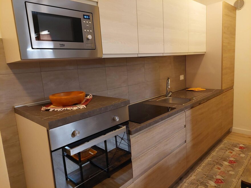 Byt, který se skládá z kuchyňky, obývacího prostoru, manželské ložnice a koupelny, se nachází v centrální oblasti, na ulici obchodů a hned vedle nového obchodního centra.