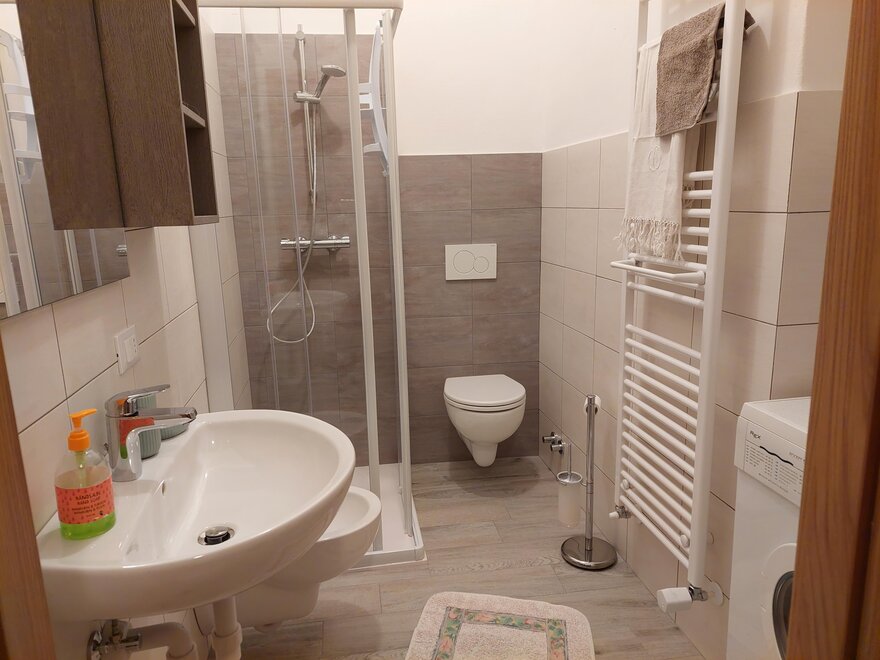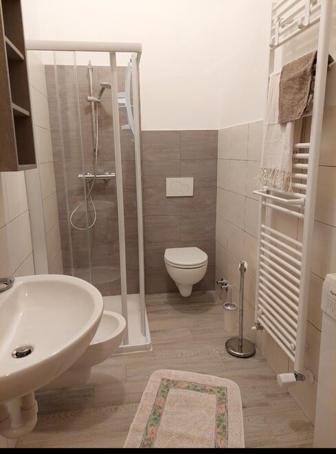 sprcha, WC, bidet, tekoucí studená/teplá voda, umyvadlo, koupací vana