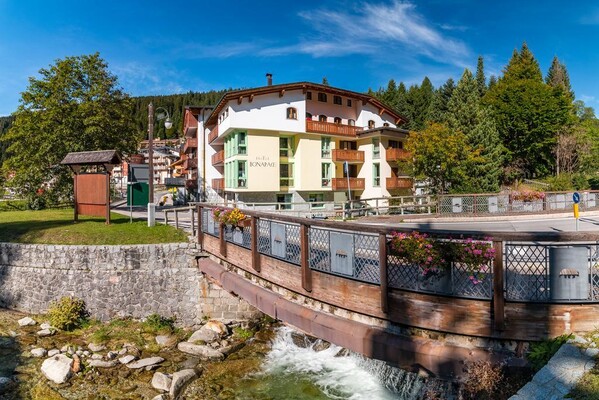 Čekáme na vás v hotelu Bonapace v Madonně di Campiglio, obklopeném kouzelnou krajinou Dolomit Brenta pro příjemný pobyt Hotel Bonapace byl jedním z prvních hotelů v Madonně di Campiglio, který byl postaven. Naše rodina tuto činnost provádí odjakživa, stará se o klienty a vytváří s nimi rodinný a přátelský vztah. Jsme na klidném a slunném místě, v blízkosti lanovky na horu Spinale a rybníčku, jen kousek od centra města Narodil se jako „Dům pro turisty“ na konci 19. století, hotel Bonapace otevře toto léto novou bazén s výhledem na zahradu. Naše domácí kuchyně, wellness centrum a kousek „dobrého klidu“ udělají zbytek.