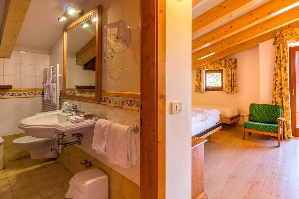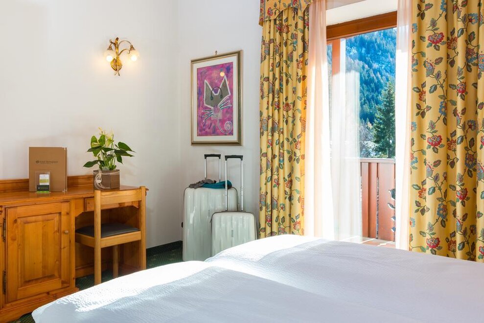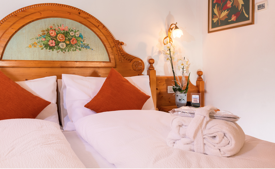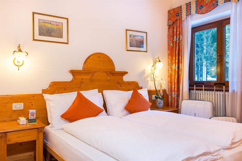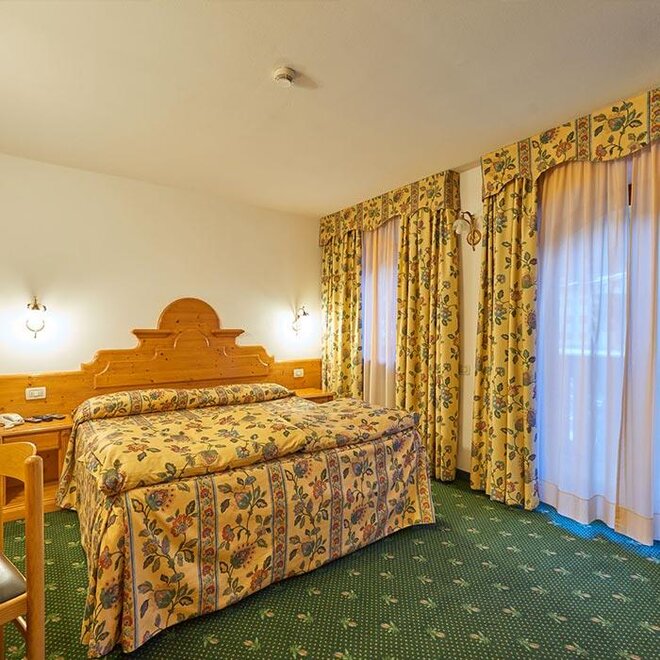 Pokoj zařízený v horském stylu může ubytovat 2 osoby s manželskou postelí (je třeba specifikovat). Různé jsou vybaveny balkonem, LCD satelitní televizí s programy pay per view SKY, fénem, internetovým připojením, trezorem, telefonem. Rovněž provádíme večerní službu úklidu postelí.