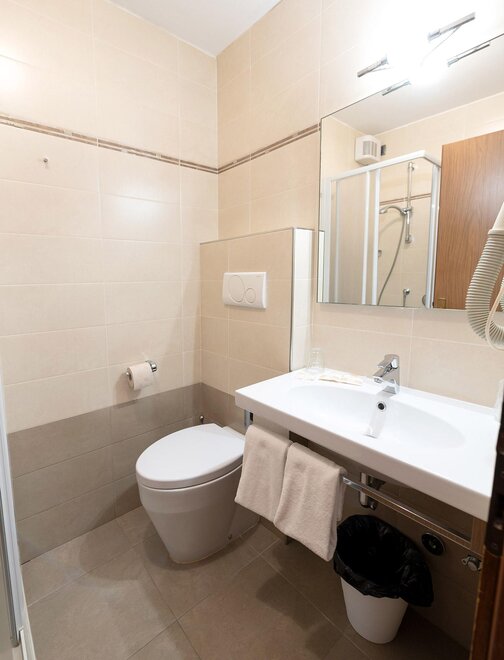 WC, sprcha, courtesy toiletries, tekoucí studená/teplá voda
