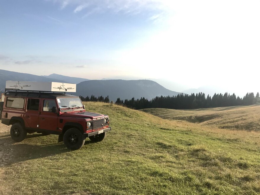 In late summer / early fall seasons, live the adventure of flying on the most remote slopes of Alpe Cimbra, reachable only with Land Rover Defender vehicle, accompanied by an expert guide and pilot