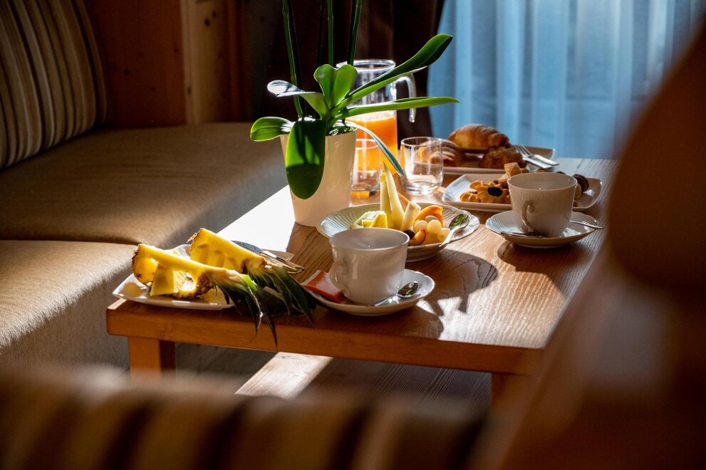 Malý dárek v podobě kosmetických produktů řady "Alloch" od Terme Dolomia, měkký župan (pouze velikost pro dospělé) a pantofle do pokoje. Spa je pohodlně dostupná výtahem z pokoje.Vybavení pokojů