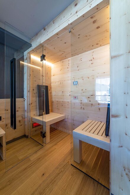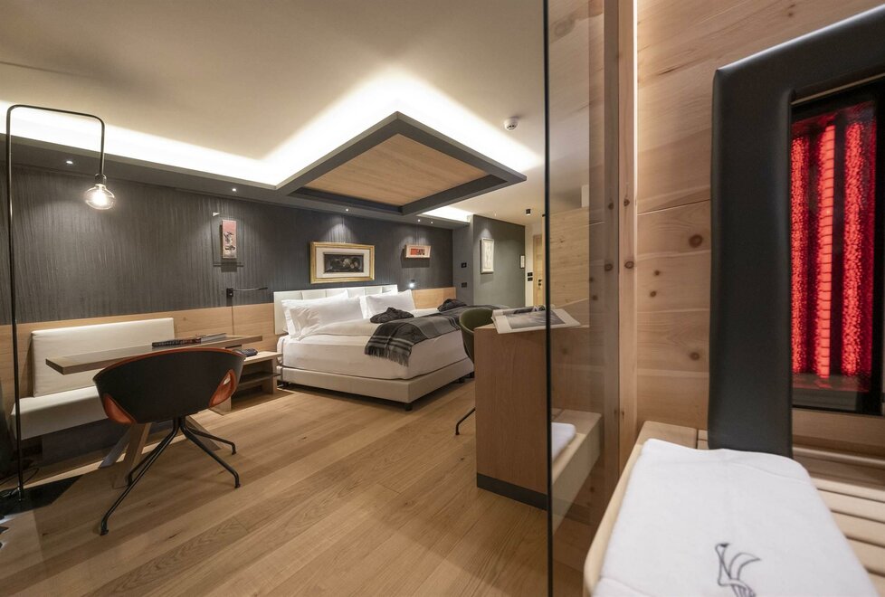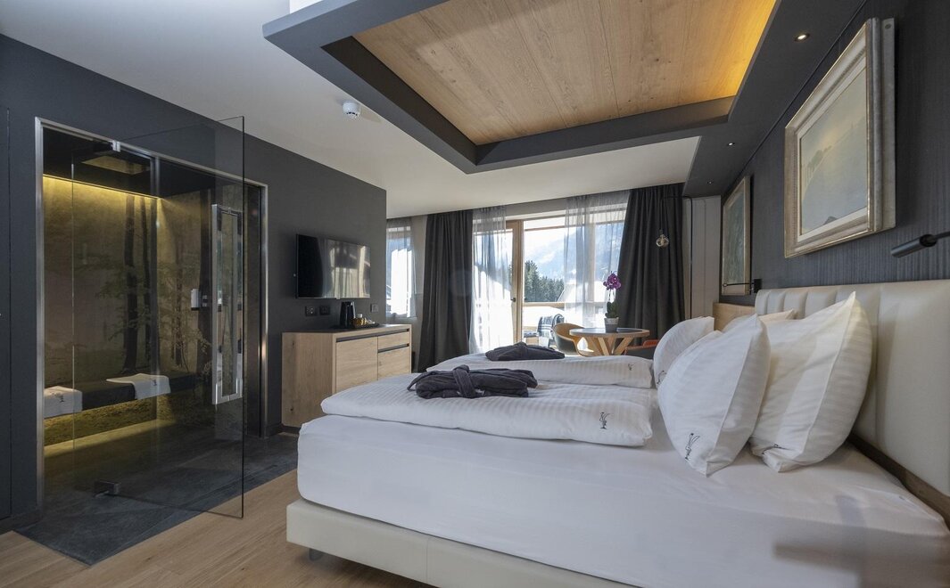 CHARAKTERISTIKY: Soukromý balkon s výhledem do údolí - Vysoce kvalitní matrace - Infrasauna z cirmolu - Minibar a trezor - Vícejazyčná Smart TV