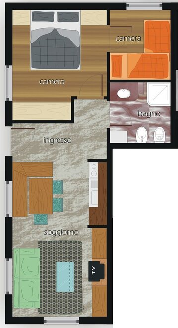Velikost 50 m² Obsazenost 1 - 6 Dospělí , 0 - 4 děti Pokoje 3 Počet lůžek 2 Detail pokoje