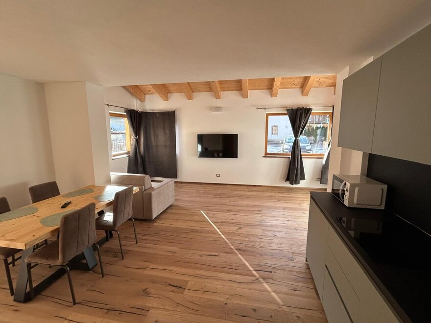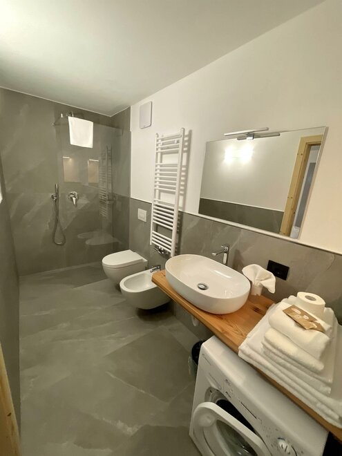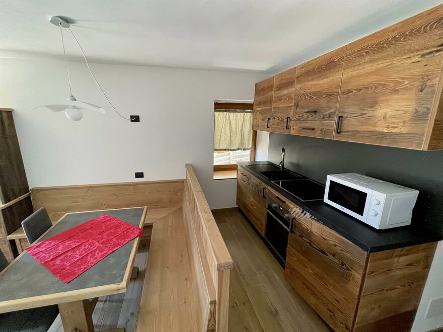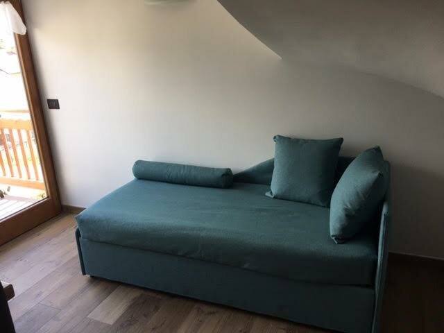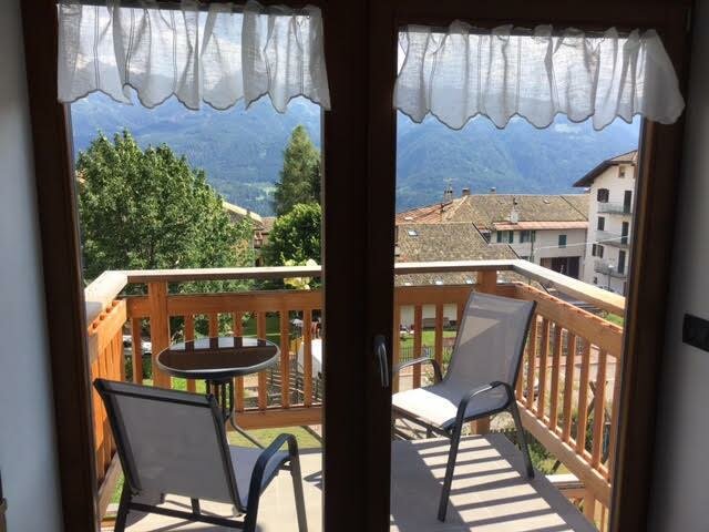 Apartmán s balkonem v prvním patře naší Casa Fabiolin, zrekonstruované v roce 2022, se nachází v slunečné a klidné oblasti, s výhledem na údolí hory Catena del Lagorai, je velmi dobře zařízen a disponuje ložnicí s manželskou postelí, kuchyní/obývacím pokojem s rozkládací pohovkou, koupelnou se sprchou.