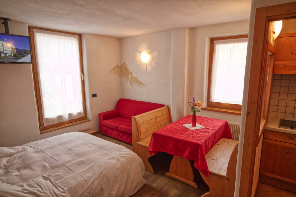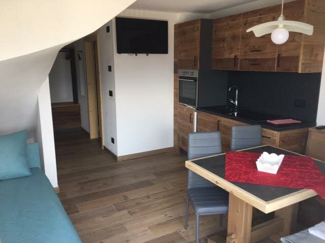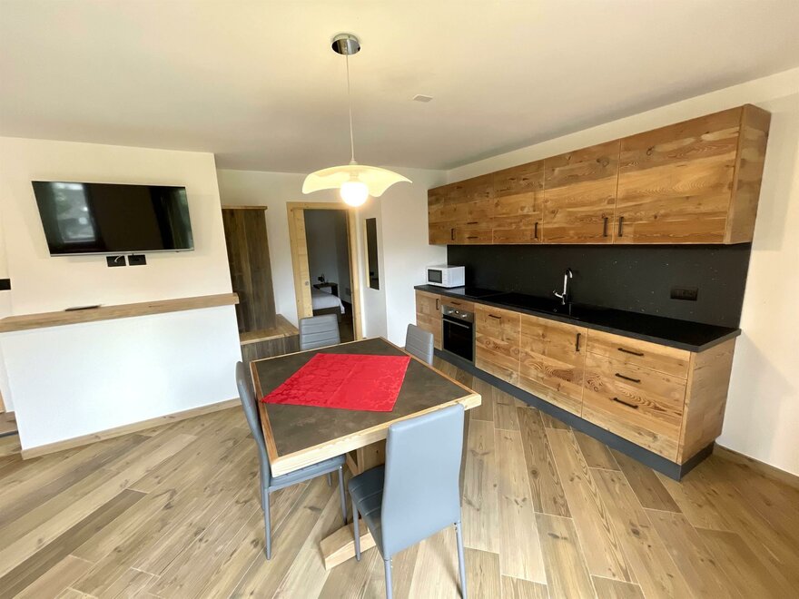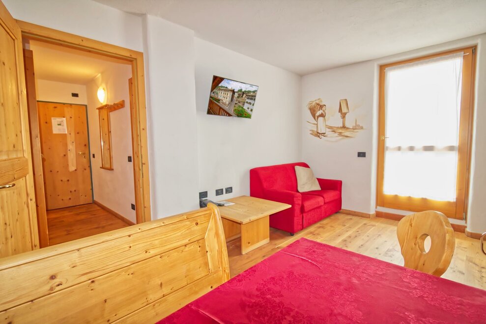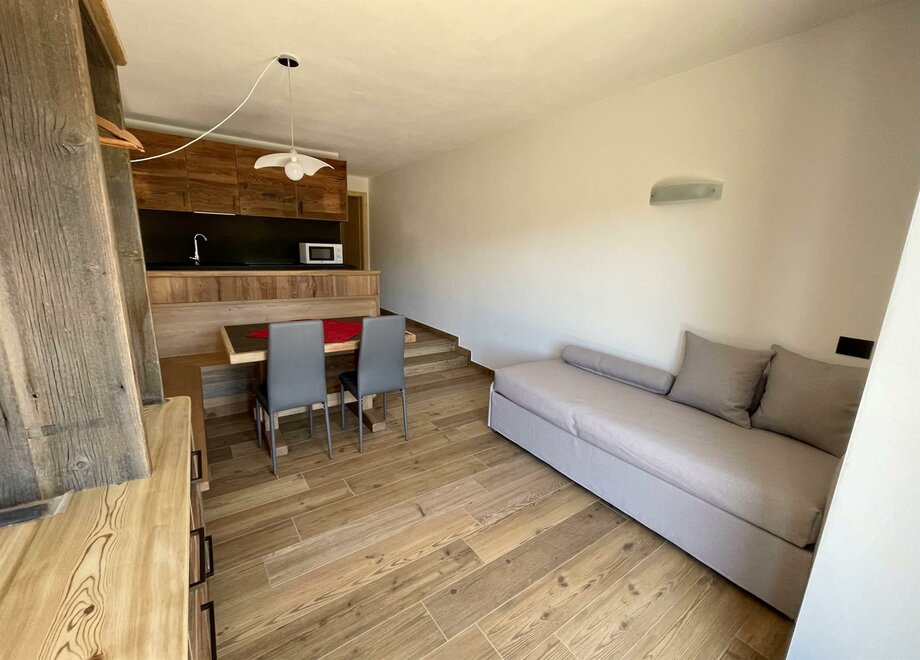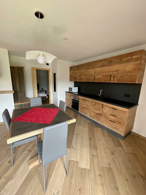 Byt s terasou v prvním/přízemním patře našeho domu Fabiolin, zrekonstruovaného v roce 2022, se nachází v slunečné a klidné oblasti s výhledem na údolí hor Catena del Lagorai, je velmi dobře zařízený a disponuje manželskou ložnicí, kuchyní/obývacím pokojem s rozkládací pohovkou, koupelnou se sprchou.