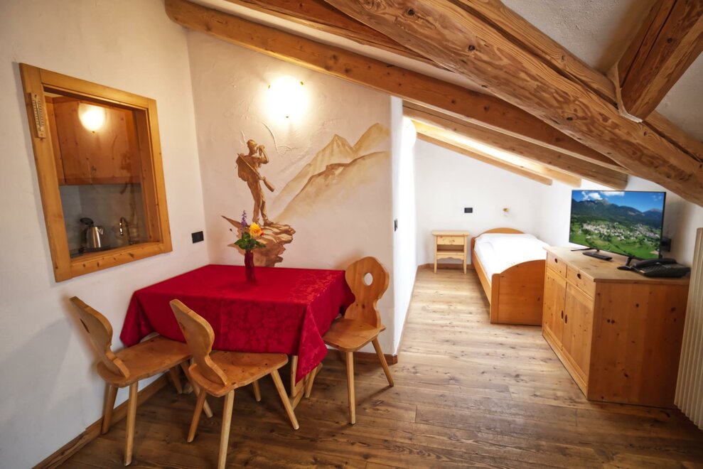 Byt se zahradou v přízemí našeho domu Fabiolin, zrekonstruovaný v roce 2022, se nachází v slunné a klidné oblasti s výhledem na údolí a pohoří Lagorai, je velmi dobře zařízený a disponuje manželskou ložnicí, kuchyní/salonkem s rozkládací pohovkou, koupelnou se sprchou.