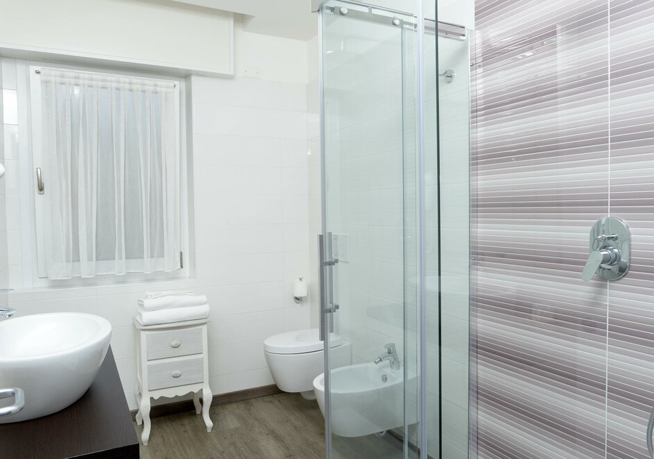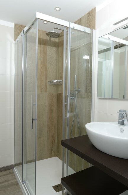 Soukromá koupelna s prostorným sprchovým koutem