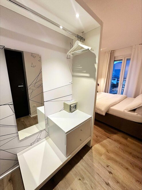 Vítejte v naší útulné Standardní manželské pokoji, vybavené pohodlnou postelí, která zaručuje maximální komfort během vašeho pobytu. Pokoj má okouzlující obytný balkon, který nabízí výhled na majestátní hrady a okolní hory. Tento manželský pokoj je navržen tak, aby nabízel útulné a relaxační prostředí, se zvláštní pozorností věnovanou komfortu našich hostů.