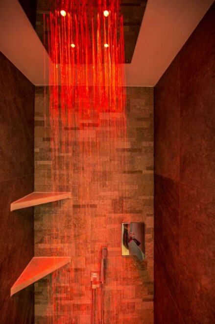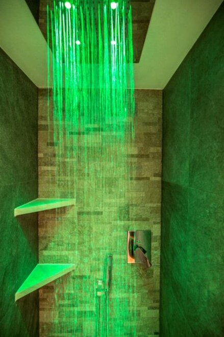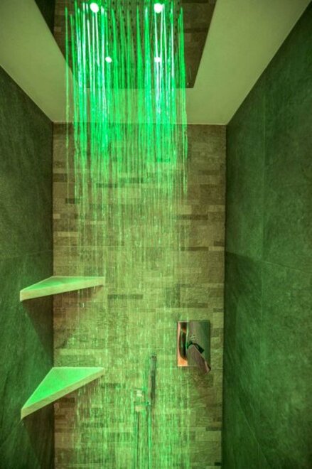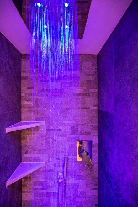 ample space in the shower and bathroom, extra space around the bed, accessible walk-in shower