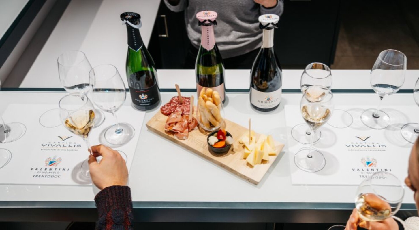 Und nach dem Vergnügen … wieder das Vergnügen! In der neuen Vinothek können Sie sich über die Geschichte des Unternehmens, der Marke „Valentini di Weinfeld“, des ersten Trentiner Sekthauses seit 1899, und der Linie Depero, ein Unikat und Flaggschiff der Produktion, informieren. Für ein 360°-Verkostungserlebnis werden Sie auf der Suche nach den Aromen und Nuancen der erzeugten Weine geführt.