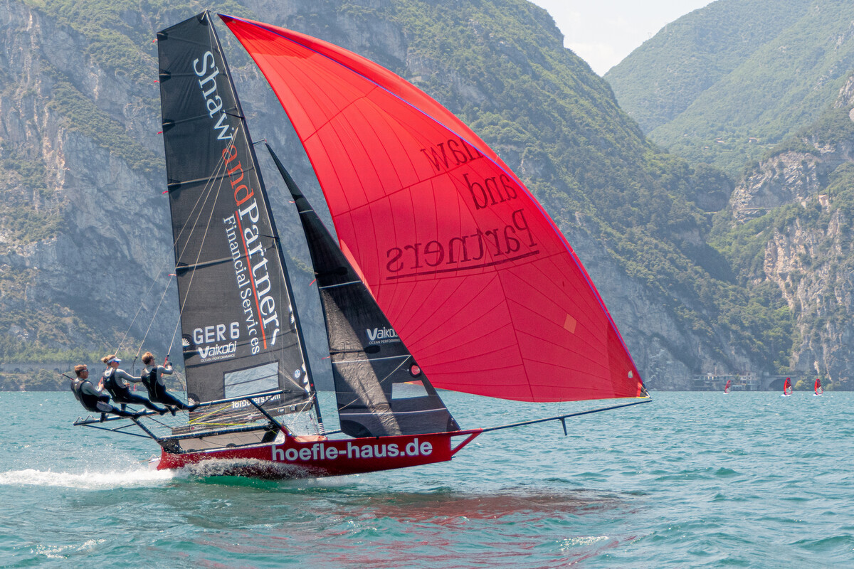 Wenn diese Boote über die Gewässer des Garda Trentino gleiten, entsteht ein außergewöhnliches Schauspiel aus Geschwindigkeit, Technik und farbenprächtigen Segeln vor der einzigartigen Kulisse des Gardasees.