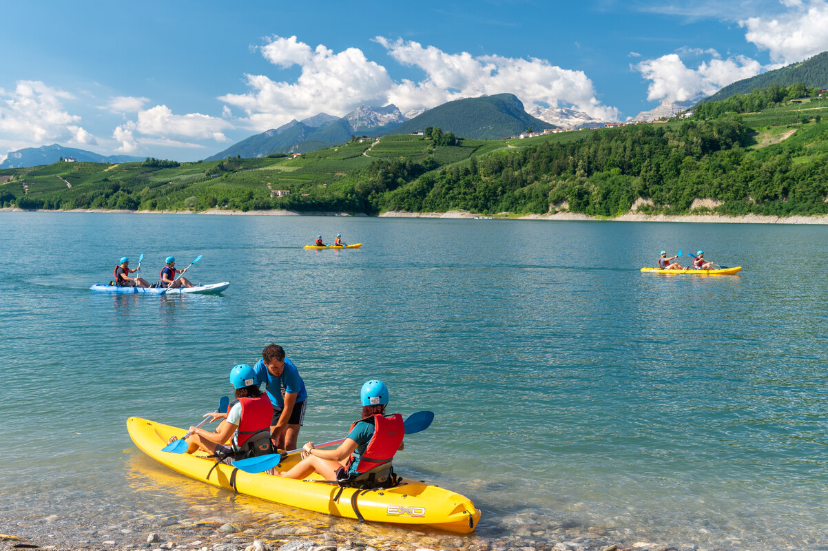 Eine Kanufahrt in den Novella-Schluchten ist ein einzigartiges Erlebnis, das für alle zugänglich ist. Die Route beginnt am brandneuen Strand von Plaze. Dort finden Sie unsere Guides, die Ihnen Ausrüstung und Kanus zur Verfügung stellen. Sie werden den ersten Abschnitt von 4 km genießen, während Sie die herrliche Aussicht auf das Val di Non mit den Brenta-Dolomiten und Castel Cles im Hintergrund bewundern. Sie werden exklusiv 20 Minuten lang von einem Motorboot gezogen, bis Sie den Eingang der Schluchten erreichen. Von dort aus beginnt das eigentliche Abenteuer in Schluchten von über 50 Metern Höhe, die über Jahrhunderte vom Novella-Fluss ausgeschnitten wurden. Eine unglaubliche und absolut sichere Erfahrung. Ein Stück Paradies, das vielen noch unbekannt ist, aber sicherlich beeindruckend. Eine aufregende Kajak-Exkursion, besonders geeignet für Paare und Familien, auch mit kleinen Kindern (ab 6 Jahren). Begleitet von einem erfahrenen Instruktor werden Sie ein Abenteuer erleben, eingetaucht in die faszinierenden und wilden Novella-Schluchten, die nur vom See aus in ihrer Gesamtheit sichtbar sind.