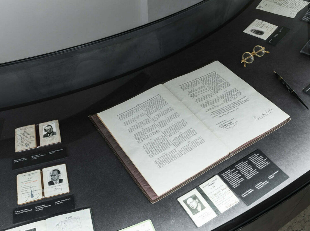 Gegenstände, Tickets, Notizen finden in einer Truhe Platz; gut geschützt ist die Originalausgabe der Verfassungsurkunde mit den Unterschriften von Alcide De Gaperi (damals Präsident des Ministerrates), Enrico De Nicola (Präsident der Republik) und Umberto Terracini (Präsident der Verfassungsgebenden Versammlung) zu sehen.