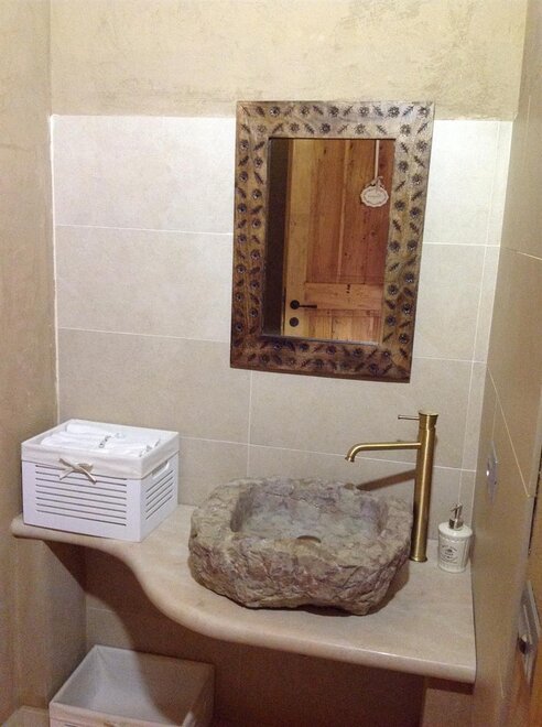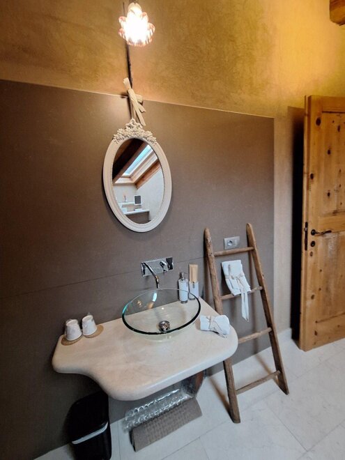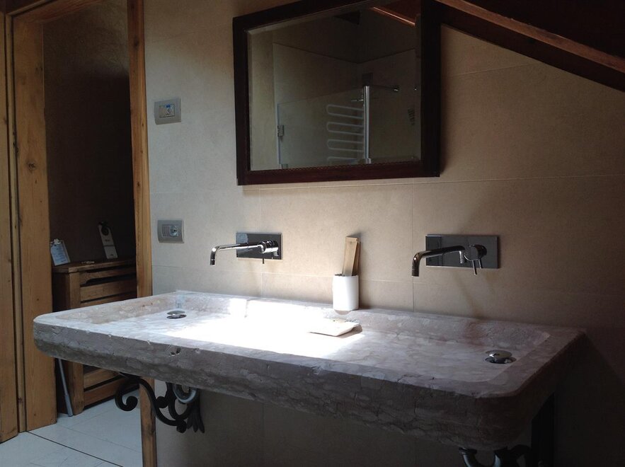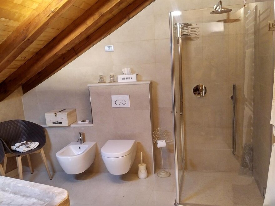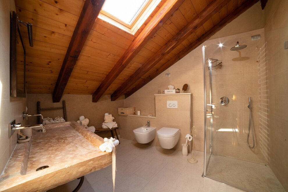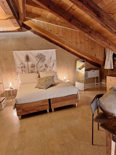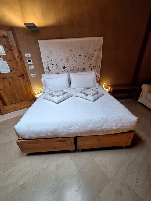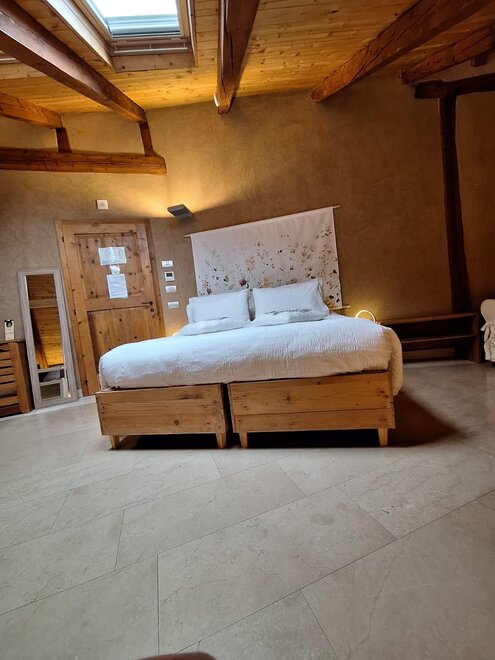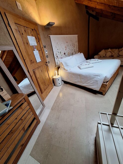Das Marzemino Zimmer ist perfekt für zwei Personen, aber auch für drei Personen, hat eine schöne und komfortable Schlafcouch. Es gibt zwei suggestive Fenster im Dach und das Badezimmer, auch ein Fenster im Dach, hat eine Steinwanne, die einmal im Bauernhaus stand, das den Bauernhof unterbringt. Marzemino ist der Name des typischen Weines unseres Vallagarina-Tals. Die Wände sind alle mit Lehm gebaut. Sie werden das Radio im Zimmer und im Zimmer, Klimaanlage, WiFi, Kekse des Willkommens und handgefertigte Möbel mit dem Holz des alten Bauernhofes finden.