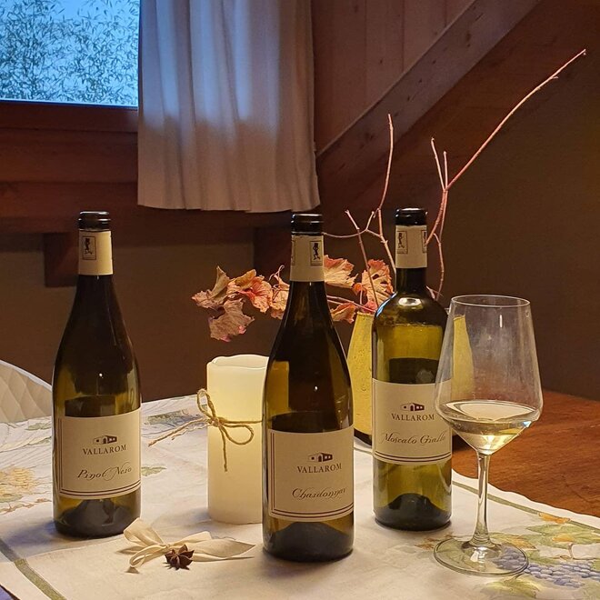 Wenn Sie bei uns buchen, wählen Sie ein authentisches Erlebnis, geprägt von echten Beziehungen, natürlichen Rhythmen und viel Fürsorge. Dafür danken wir Ihnen von ganzem Herzen. Hier finden Sie keine 24-Stunden-Rezeption oder “Hotel”-Dienstleistungen. Stattdessen finden Sie uns: Barbara, Filippo und unseren Sohn Riccardo, die Sie in unserem Zuhause und unserem Bauernhof willkommen heißen, wo wir das Land bearbeiten und biologische Weine produzieren. Vom Check-in bis zum Frühstück, von den Abendessen bis zur Reinigung, erledigen wir alles zu dritt. Es gibt keine Schichten oder zusätzliches Personal: es ist nur unsere Familie, mit den Händen in der Erde oder im Keller oder im Lager oder der Vermarktung der Weine und der Schürze in der Küche am Abend und am Morgen. Wir leben auf dem Land, an einem ruhigen und etwas abgelegenen Ort. Es ist normal, dass unsere Hunde und andere Tiere in der Nähe sind; sie gehören zum Leben hier, wie der Duft von frisch geschnittenem Gras, von fermentierenden Weinen während der Ernte, von den Düften der Natur in den verschiedenen Jahreszeiten. Aus diesem Grund bitten wir Sie, die Ankunfts- und Abfahrtszeiten zu respektieren: Sie helfen uns, uns besser zu organisieren, indem wir die Arbeit auf dem Feld und im Keller mit der im Haus abwechseln, sodass wir Ihnen immer eine herzliche und sorgfältige Begrüßung bieten können. Unser Haus ist kein Stadt-Hotel und kein Restaurant: es ist unser Zuhause, und wenn Sie uns besuchen, werden Sie auch, wenn nur für kurze Zeit, Teil unseres Lebens. Wir erwarten Sie mit einem Glas Wein und einem ehrlichen Lächeln. Der Hof, in dem sich der Agriturismo Vallarom befindet, liegt in einer geschichtsträchtigen Region, der Vallagarina, in Trentino. Heute wird der biologische Landwirtschaftsbetrieb und der Agriturismo von der dritten Generation geleitet. Die Struktur ist in das Grüne eingebettet, umgeben von Wäldern, Weinbergen, Obstbäumen, einem Gemüsegarten und Bienenstöcken. Entdecken Sie die speziellen Dienstleistungen und die Food & Wine Erlebnisse, die für diejenigen entwickelt wurden, die Urlaub und Arbeit verbinden möchten. Nationaler Identifikationscode: IT022007B54GPXB68C