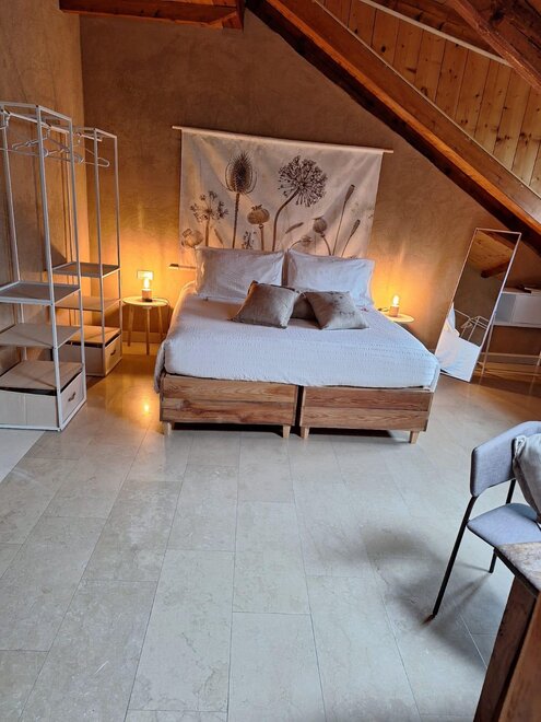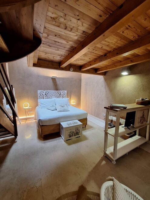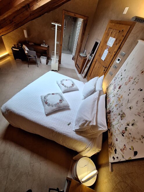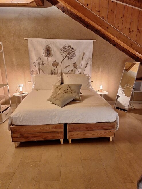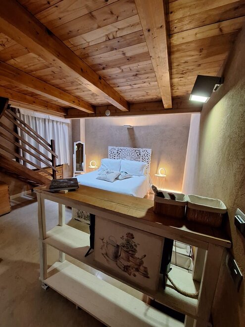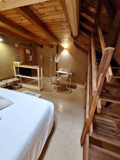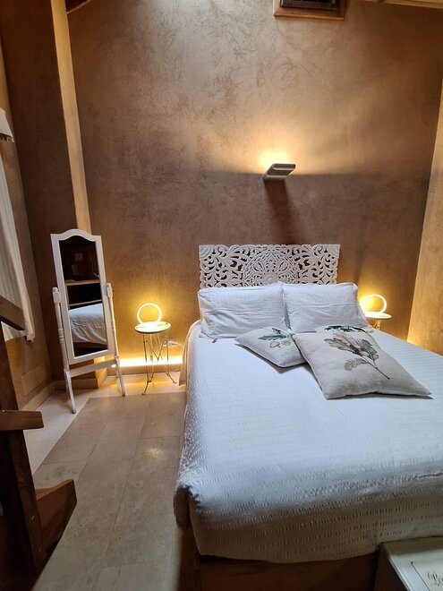 Dieses Zimmer ist nach einem unserer Bio-Weine Cabernet Sauvigno, Franc, Merlot und Syrah benannt. Das Zimmer ist ideal für zwei Personen, zusätzlich zu den Fenstern im Dach sowohl im Zimmer als auch im Badezimmer, hat eine Segwaying Gaube neben dem Bett. Die Wände sind alle mit Lehm gebaut. Sie werden das Radio im Zimmer und im Bgano finden, Klimaanlage, WiFi, Kekse des Willkommens und handgemachte Möbel mit dem Holz des alten Bauernhofes ..