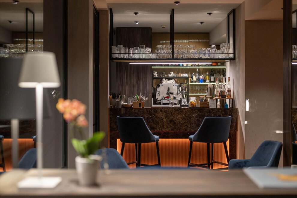 Die Einrichtung ist raffiniert und warm, mit Einsätzen aus edlem Olivenholz.