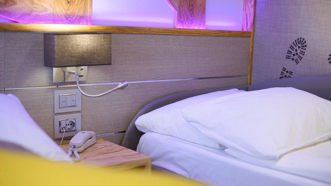 - Doppelbett (oder zwei Einzelbetten) mit Auswahl von weichem und hartem Kopfkissen