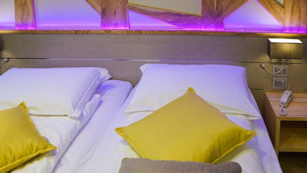 - Doppel- oder Einzelbetten mit doppelten Kissen (weich und hart)