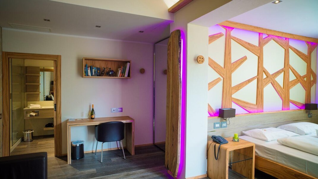 Die JUNIOR SUITE PANORAMA (37qm) ist das exklusivste Juwel des AktivHotels: das einzige Zimmer mit privater Dachterrasse und 360°-Blick auf die Umgebung.