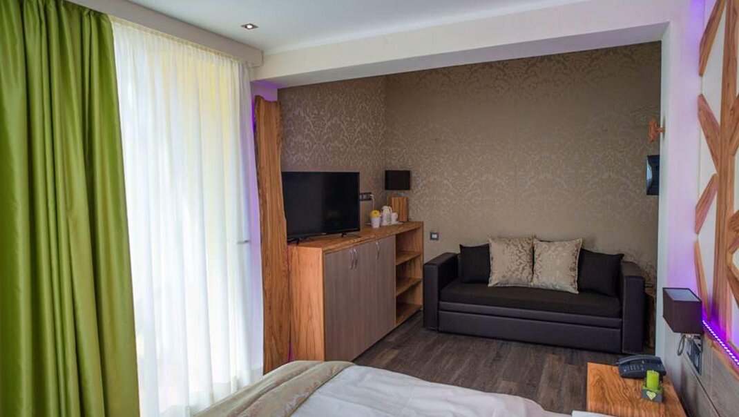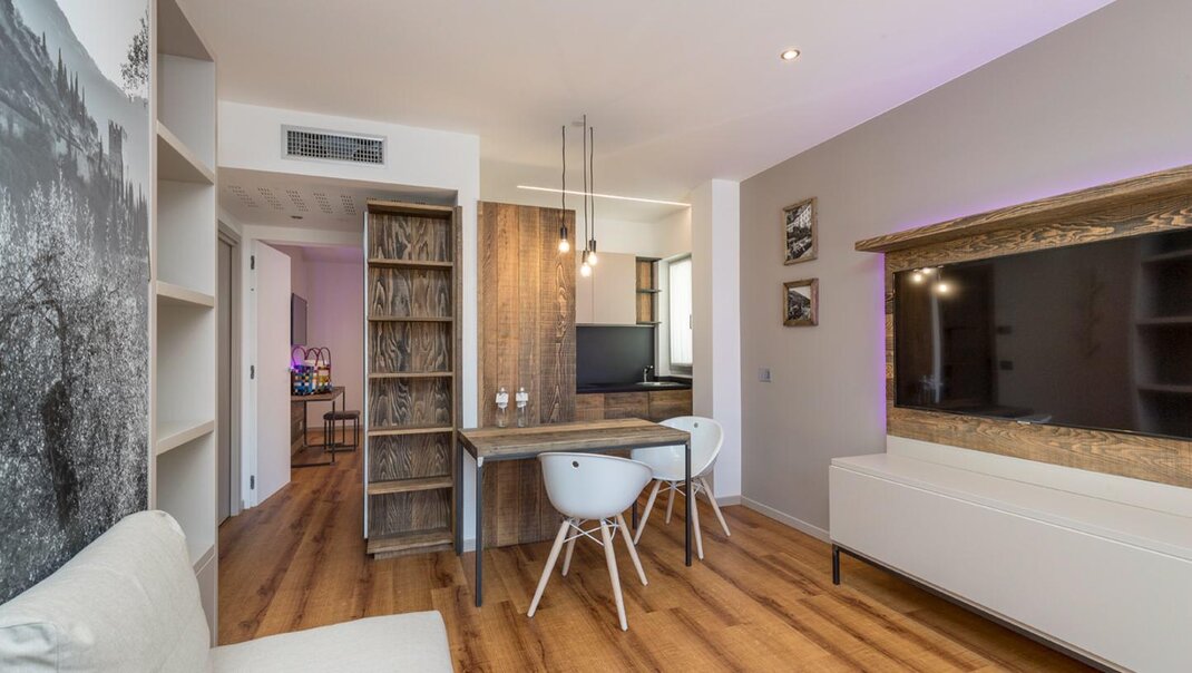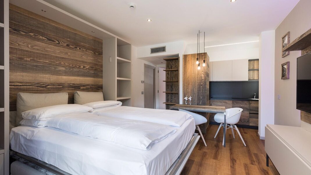 Das neue 45 m² große "AKTIV " APARTMENT ist die ideale Lösung in Bezug auf Raum und Unabhängigkeit, aber mit allen Annehmlichkeiten und Dienstleistungen eines Hotels enthalten. Es verfügt über 1 Doppelzimmer, einen Wohnbereich mit Schlafsofa, eine Kochnische und ein Bad mit Dusche.