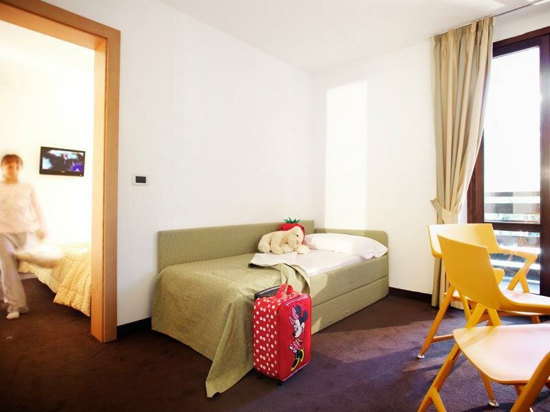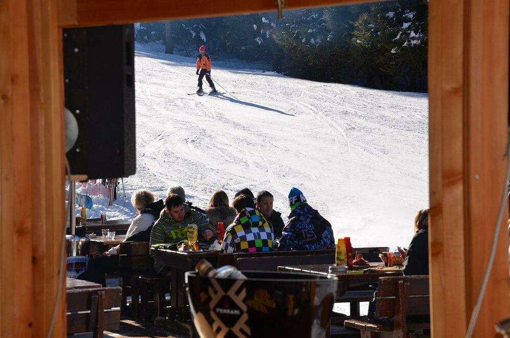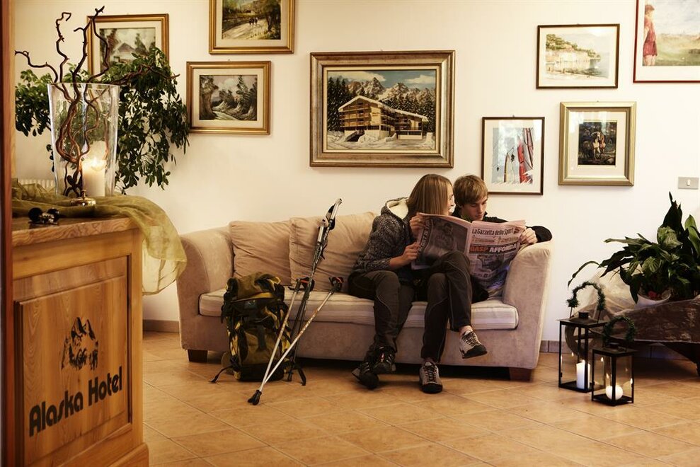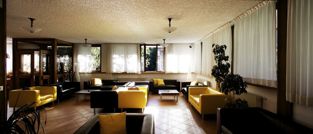 Lounge-Bar mit Panoramaterrasse mit Blick auf die Brenta-Dolomiten, Restaurant, Solarium mit Liegestühlen, Miniclub, kleiner Entspannungsbereich mit Sauna und Dampfbad. Ein Grillrestaurant à la carte direkt an der Skipiste.
