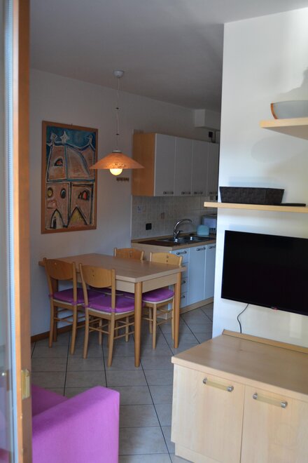 Das Haus, in dem wir wohnen, ist eines der ältesten des Dorfes. Nun wurde es gänzlich renoviert. Im ersten Geschoss befinden sich zwei Appartements mit 45 m2, die gut strukturiert und geschmackvoll eingerichtet sind. Vorausgesetzt, dass sie es wünschen, unterhalten wir mit unseren Gästen ein herzliches und freundschaftliches Verhältnis. Die Lage ist hervorragend. Man gelangt außerdem direkt zum Thermalpark, ohne die Straße überqueren zu müssen. In weniger als einer Stunde erreichbar sind weltweit bekannte Touristenorte wie Madonna di Campiglio und Riva del Garda, während man im Winter in nur 13 km Entfernung auf den Pisten von Bolbene, die besonders für Kinder geeignet sind, und in 20 km Entfernung auf jenen von Andalo Ski fahren kann.Mountainbike-Liebhaber finden hier in der Gegend Radwege und Bergstrecken, von denen aus man die zauberhaften Orte unserer Region, insbesondere die Brenta-Dolomiten, heute UNESCO-Welterbe, aus nächster Nähe bewundern kann.