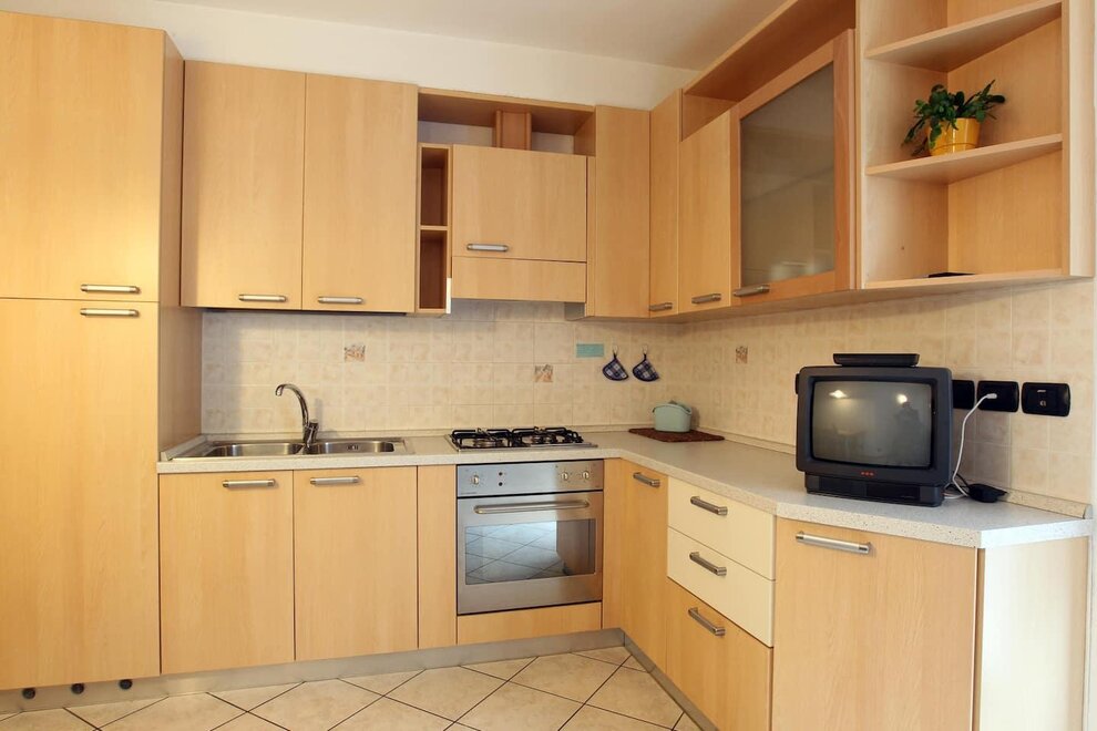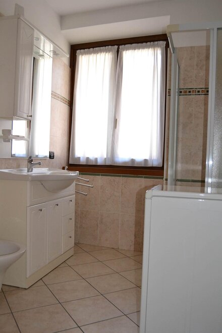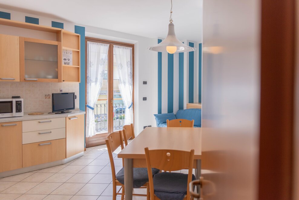 Ferienwohnungen am 1. von 50 mq mit Wohnzimmer mit kleiner Küche, Duschbad, Föhn, Heizung, reservierte Parkplatz im Freien, Waschmaschine, Wäscheständer, Bügel und Bügelbrett, Staubsauger, TV, Bettwäsche, Tischwäsche und Badwäsche auf Anfrage, Kleinetiere erlaubt.