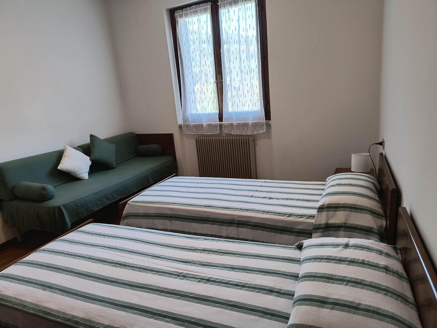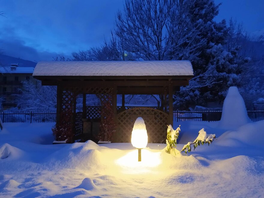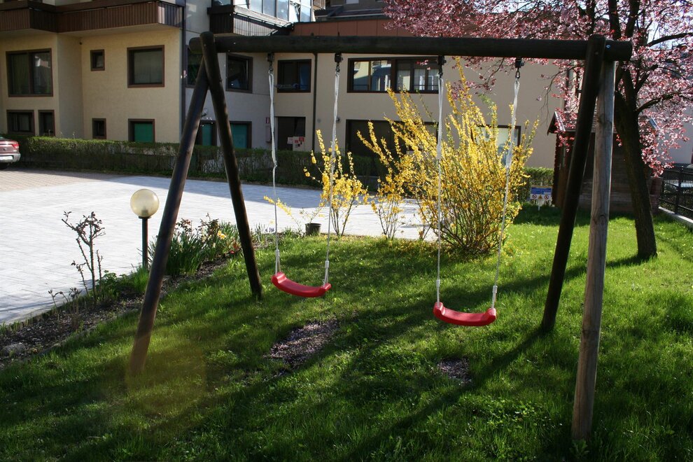 Die geräumigen Apartments mit Balkon und zwei Schlafzimmern sind auf Anfrage mit Baby-Ausstattung ausgestattet, damit dein Aufenthalt ein Kinderspiel wird. Im Apartment mit Terrasse kannst du das Mittag- und Abendessen im Freien genießen, während dein Blick auf die wunderschönen Berge fällt, die die Landschaft umarmen. Auf jeden Fall kannst du dich entspannen und den Nachmittag damit verbringen, ein Buch in unserem Garten zu lesen, während du deine Kinder im Auge behältst, die auf der Schaukel spielen; wenn es dir gefällt, kannst du den Grill benutzen und im Pavillon, der perfekt ist, um die Sommerabende unter den Sternen zu verbringen, zu Mittag oder zu Abend essen.