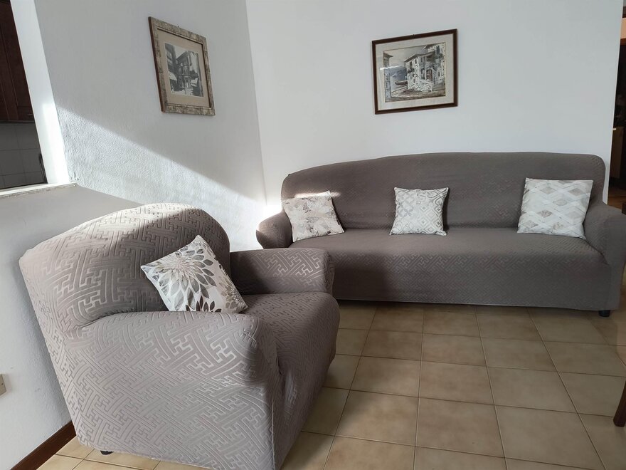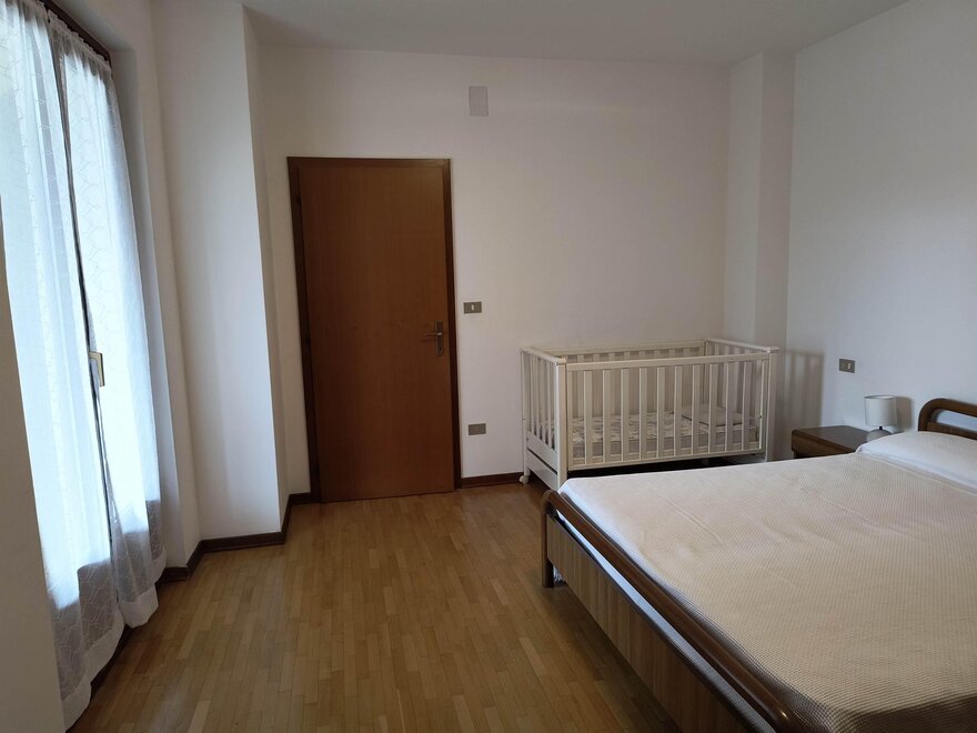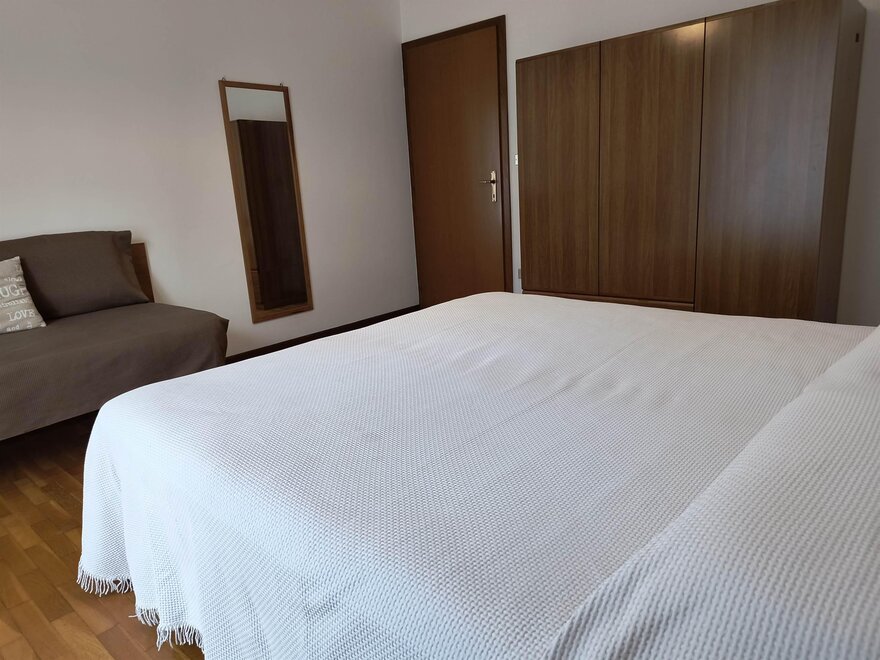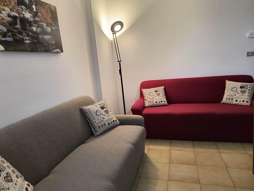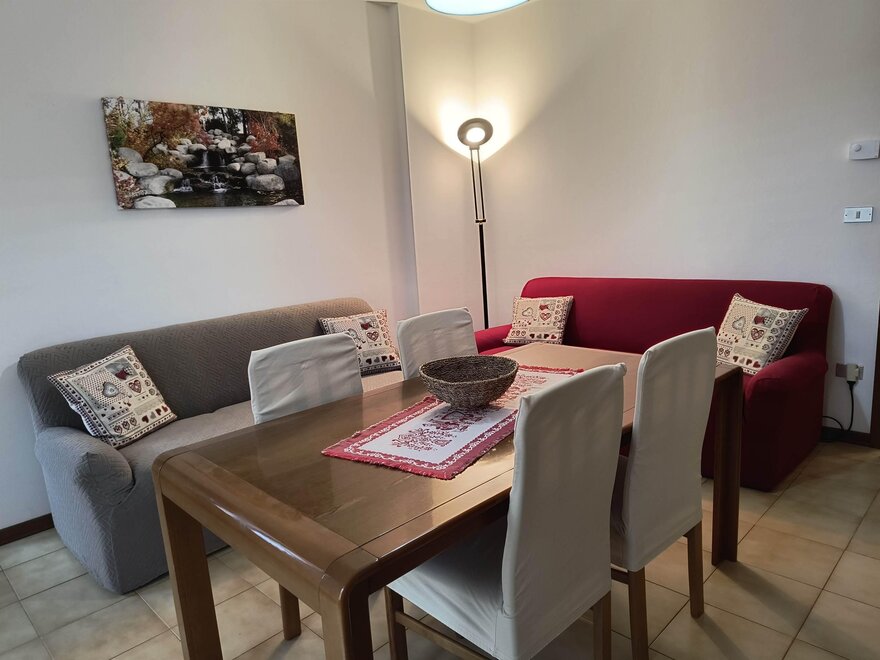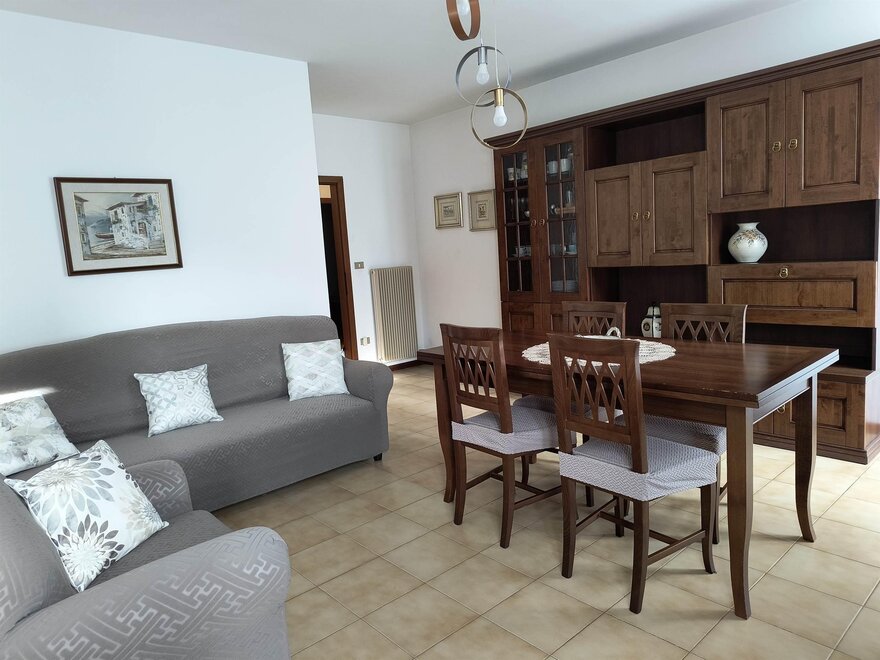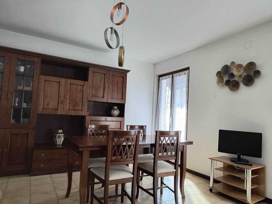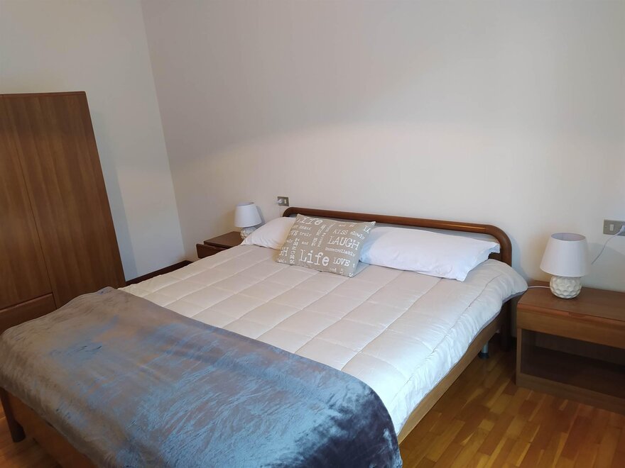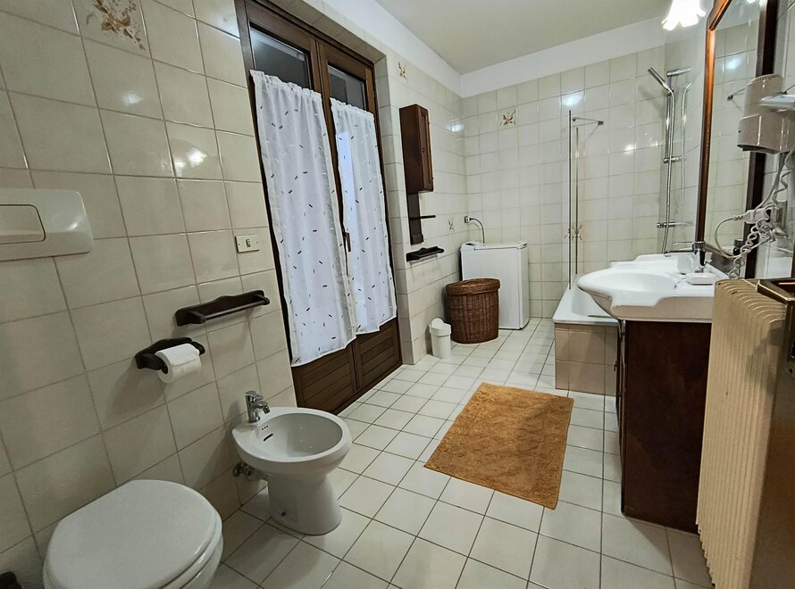 Ferienwohnung im zweiten und letzten Stock mit 70 qm, mit Wohnzimmer mit Kochnische, ausgestattet mit Geschirrspüler, Flur, Bad und Dusche mit Haartrockner, zentrale Heizungsanlage, Balkon, Terrasse mit Tisch, Stühlen und Liegen, mit Möglichkeit im Freien zu essen während der schönen Jahreszeit mit Blick auf den Park, Waschmaschine, Abstellraum, Wäschetrockenständer, Bügeleisen und Bügelbrett, Fernseher mit Satellitenschüssel, Garten mit Pavillon, Grill und Schaukeln, Hof, privater Parkplatz im Freien, Haustiere kleiner Rasse sind erlaubt.