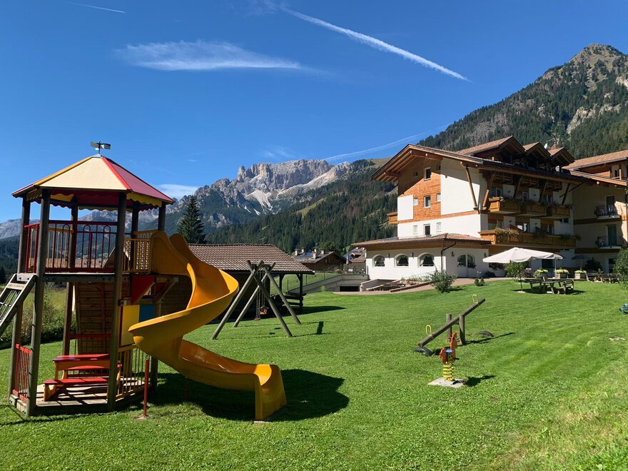Nicht weit von Ortuszentrum, inmitten einem Spielpark, der im Teil einrichtet ist, das Hotel Panorama ist in ruhiger und sonniger Lage gelegen und es ist der idealer Ausgangspunkt für Wanderungen und Ausflüge. Die Skibus-Haltestelle ist in Richtung Seilbahn Col Rodella; der Schlepplift und das Scuhlgebiet für Anfänger sind direkt gegenüber und die Loipe für Skilanglaufliebhaber sind direkt hinter dem Haus. Alle 30 Hotelzimmer verfügen über Privatbad bzw. Dusche und WC, sowie Telephon, SAT Fernsehen, und teilweise Balkon. Bar und Restaurant dauernd zur Verfügung; sowie Taverna-Fernsehsaal, Terrasse und Solarium. Das Haus ist von der Familie geführt und garantiert eine gemütliche Urlaubsatmosphäre. Unsere Stammgäste kehren immer gern wieder.