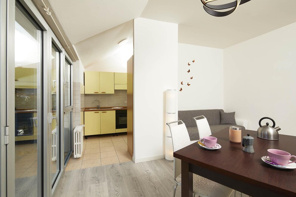 Ferienwohnung Diamant befindet sich im sechsten Stock mit Aufzug in einem sehr zentralen Gebäude auf Viale Carducci. Der Blick über die Jugendstilvillen ist wunderbar.