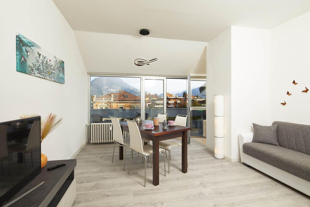 Diamant Ferienwohnung verfügt über eine strategiche Position: 50 meter entfern finden Sie das Zentrum von Riva del Garda mit modische Geschäfte, typische Restauranten und Museum.