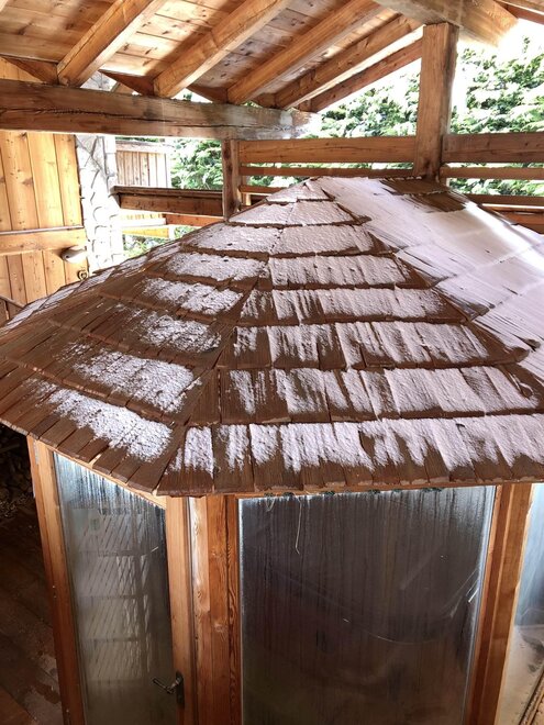 Neu für 2023: Auf der Liegewiese vor den beiden Hütten haben wir eine neue Sauna, Infos vor Ort.